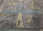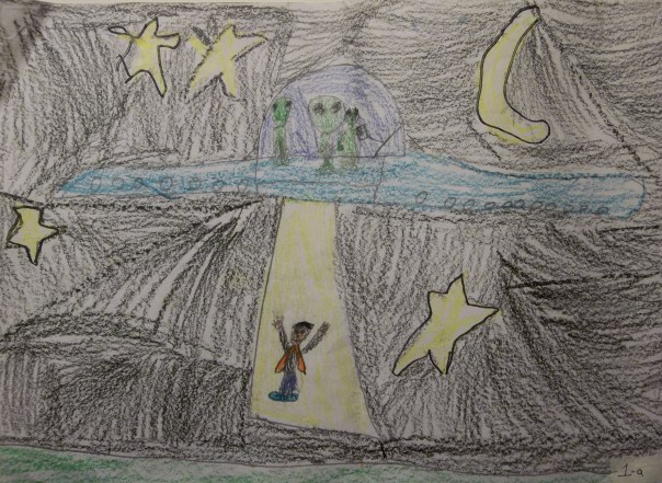 Marcus won a ribbon in an art contest at Tranquillity Elementary School for this picture he drew of himself being beemed up by aliens. Age 7, this picture is dated 2000. Just wanted to start the album out with something of his, we thought you might enjoy it.