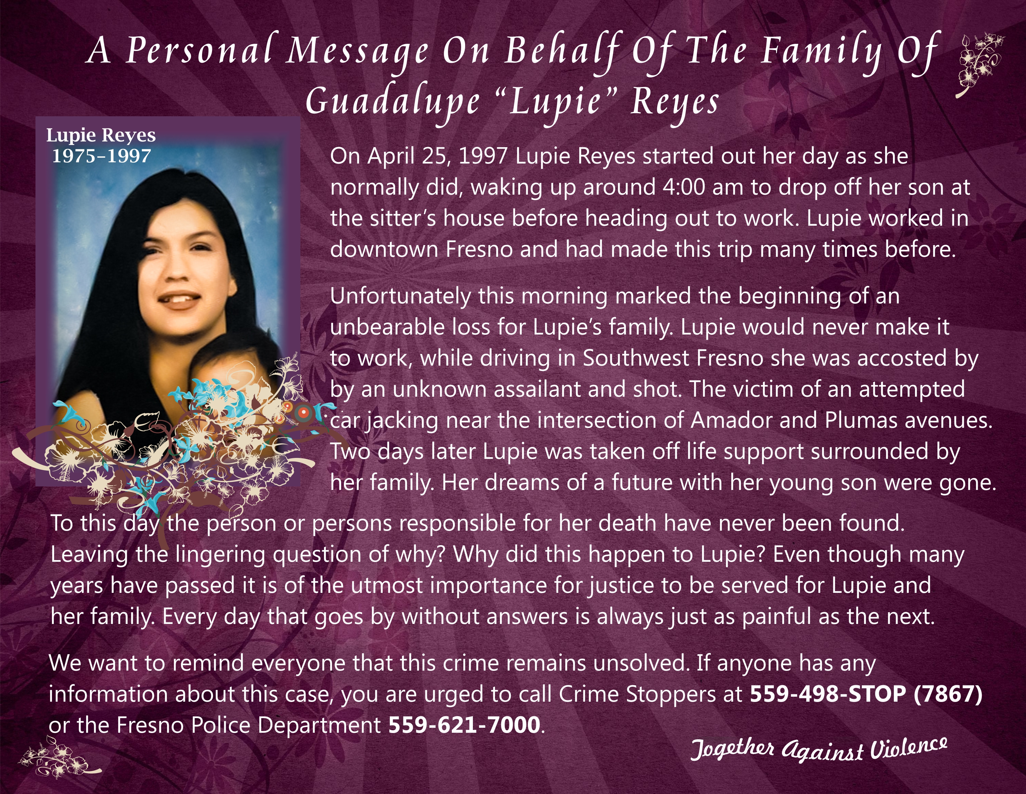 Raising Awareness About the Impact of Violence on Our Youth and Our Communities. Please Call The Fresno County Sheriff's Office At 559-488-3111 If You Have Any Information About This Case.